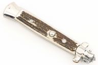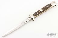Angelo Campolin Sr. was born in 1923 in Maniago, Italy. He worked on perfecting his knife making skills before WWII and at this time made his first switchblades. After the war, in 1947 he started his company and made 30 stilettos with the marking “Angelo Campolin”. In the 1970’s Angelo’s son Gianni started to work in the company and they were specializing in folding hunting knives and also manual folding stilettos for the Robert Klaas company in Solingen Germany with their Kissing Cranes mark. In 2002 American switchblade collectors Dan Fuller, Brad West, and Tim Zinser were visiting Maniago and enjoying a few glasses of wine in a bar with Angelo Jr. and Gianni. The discussion was about a new name for some knife projects they wanted to pursue. It was Brad West that suggested the tang stamp should be AGA, for Angelo, Gianni, Angelo, thus representing three generations in the knife making business. The Campolins liked it and it stuck. In the beginning it was just a few items, but grew to the point where now there are 12 models and different scale options. The goal has been to offer quality switchblades using the old methods and traditions. Being a collector himself, Angelo Jr. knows what others like. The company headquarters has moved to Austria with production still in the original Maniago shop, as well as the others in Maniago that produce the knives for A.G.A. Campolin.