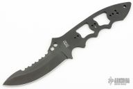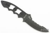 This Pygmy Warrior from Spyderco features a black coated upswept blade with sawteeth on spine. .168" blade stock and 1.52" blade depth. Full tang skeletonized construction. Exposed tang pommel with lanyard hole. Has scuffs and light scratches, great condition otherwise. Factory Second.