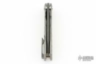 This GF1 MOD by DSK Tactical Knives features a .204" thick acid stonewashed blade with fullers. The handle has a sculpted and stonewashed titanium frame with a tip up titanium clip. Nice detent, lockup and blade seating. Excellent condition. Comes with nylon zippered case and COA.