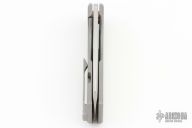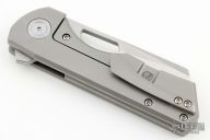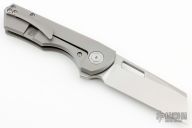 This Production Yeager by Brian Brown features a satin finish wharncliffe style blade with flipper tap. The handle has a mill checkered and bead blasted titanium frame with satin finished pivot collars, bead blasted titanium tip up clip and backspacer. Comes with a zippered case. Excellent condition.
