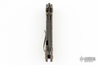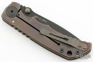 This Harsey framelock folder by Spartan Blades features a black drop point S45VN blade with dual thumbstuds and a notched thumbrest. The handle has an anodized titanium frame with a laser engraving.  Has nice detent, lockup, and blade seating. Comes with original box and papers.  Excellent Condition.