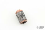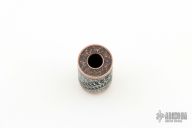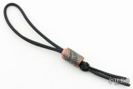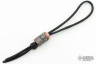 Titanium Fossil Viperfish Lanyard Bead, Created by Tom Sterling using a unique combination of ancient and cutting-edge advanced technologies, each chosen for best artistic effect, with fossilized viperfish in rock matrix theme. 24 karat hand engraved gold inlays, antiqued Grade 2 titanium and tellurium copper. Diamond knot paracord lanyard included. Signature on the bottom of the bead. Comes with a COA. New from maker.