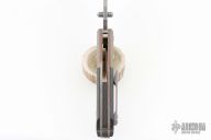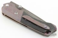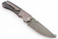 This Custom Navajo Folder from Dervish Knives features a drop point acid wash and tumble finished blade with dual thumbstuds and notched thumb rest. The handle is comprised of subdued mokuti bolsters, marble carbon fiber scales with lanyard hole, over titanium liners with a carbon fiber backspacer. Tip up titanium pocket clip. Comes with zipper case. Has scuffs and scratches throughout, has a couple spots on the blade. Good user condition otherwise.