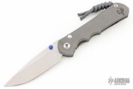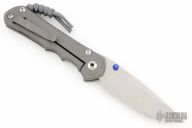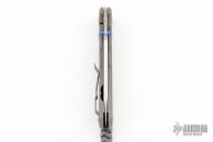 This Large Inkosi from Chris Reeve Knives features a tumble finished drop point blade with dual anodized thumb studs and notched thumbrest. The handle has a bead blasted and laser engraved titanium frame over a single barrel spacer with a matching bead blasted titanium tip up clip. Includes original box, paperwork, tools, cloth, and leather slip. Maker's card dated November 29, 2023. Excellent Condition.