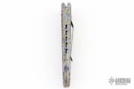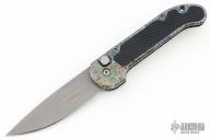 This L-UDT by Microtech is dated 10/96, it has a bead blast blade. Splash anodized aluminum handle with non-slip inserts. Side opening coil-spring automatic. Tip down carry bead blasted titanium clip. Has a couple light scuffs, otherwise excellent condition. Comes with original box and papers.