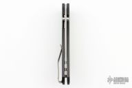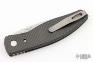 This Atom Linerlock by Three Rivers features a stonewashed blade with dual thumbstuds. The handle has carbon fiber scales, titanium liners and tip up reversible clip. Nice detent, lockup and blade seating. Comes with TRM box and papers.  Excellent condition.