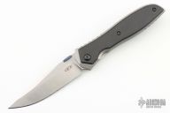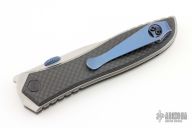 This knife by Zero Tolerance is an Emerson design. It features a two-tone blade with a custom Gray Precision anodized titanium thumbdisc. The handle has carbon fiber scales by Sharp Dressed Knives, stonewashed titanium frame, custom tip up deep carry anodized titanium clip, left or right reversible. Comes with original box, scales, clip, thumbdisc and papers. Excellent condition. s/n 3222