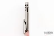 The Nine features a frame lock style locking mechanism and includes a stainless steel lock bar insert. The blade is made with CPM20CV steel which is known for its toughness and edge retention - wide blade and a piercing tip for everyday tasks. A modern minimal everyday knife that is designed with eye catching details and a deep carry pocket clip that tucks it out of sight for discreet carry. Handles are 3D machined with carbon fiber inlay.