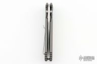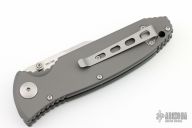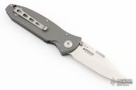The contour and lines of this Dietmar Pohl design complement the style found in the original Automat Kalashnikov rifle. The finest CNC machine work is incorporated into the anodized 6061-T6 aluminum handles, designed for a firm and secure grip. The hand rub satin finished blade is reminiscent of the bayonet used with the Automat Kalashnikov 47 rifle. Tip up stainless steel clip. Nice lockup, detent, and seating. Excellent condition. Comes with original box.