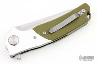 This 3rd rendition of Stedemon's Deep Sea Monster takes the model to new heights with a sophisticated gentleman's EDC design. The DSM-III is outfitted with black G-10 handle scales over a stainless steel liner lock frame, with an extended lanyard loop back spacer. It has a modified drop point blade made from Japanese VG-10 steel with an impressively unique compound grind. A bead blasted pocket clip is included for tip-up carry. This DSM-III model has an OD green G-10 handle and a satin finished blade.