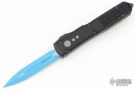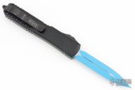 This Ultratech OTF automatic by Microtech features a D/E blue blade. Black aluminum contoured frame with black tip down stainless steel clip. Dated 07/2022 and s/n 7535. Comes with original box and papers. Excellent Condition.