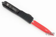 This Ultratech OTF automatic by Microtech features a D/E red blade. Black aluminum contoured frame with black tip down stainless steel clip. Dated 07/2022 and s/n 7589. Includes original box. Excellent condition.