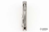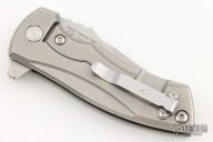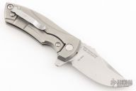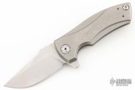 This knife by Zero Tolerance is a collaboration with Les George. Features a tumble finished blade with notched thumbrest and flipper. The handle has a tumble finished titanium frame with a tip up reversible clip, single black barrel spacer. Stainless steel lockbar insert and integral overtravel stop. #4040. Has some light scratches, otherwise excellent condition.