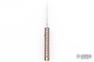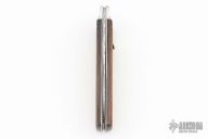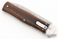 This lever auto from Mikov Knives has a Damasteel spear point blade with false top edge. File-worked blade spine. The handle has polished stainless steel bolsters and liners, and rosewood scales. Excellent Condition. #134