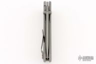 This MAC2 features a stonewashed drop point blade with dual thumbstuds and a notched thumbrest.  The handle features a milled titanium frame with a matching tip up pocket clip.  Includes box and papers (wrong card). Blade: Magnacut. Excellent condition.