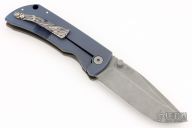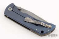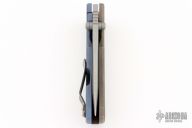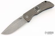 This MAC2 features a bead blasted drop point blade with dual thumbstuds and a notched thumbrest.  The handle features an anodized and laser engraved titanium frame with a laser engraved tip up pocket clip.  Includes box, extra clip, and papers (wrong card). Excellent condition.