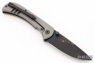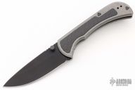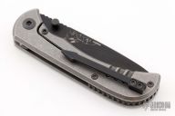 This Cav Framelock by Half Face Blades features a black blade with notched thumbrest and dual thumbstuds. The handle has a stonewashed titanium frame with black G-10 inlay, black titanium backspacer and tip up clip that is reversible. Comes with original box, and papers. Has a couple light scuffs, otherwise excellent condition.
