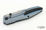 This one has black pvd hardware, Thor Damastel and Mystic blue handles. Comes with original box and COA. Has some light scuffs and scratches, otherwise excellent condition.