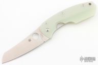 This Anso Design folder by Spyderco features a satin finished blade with thumbhole. The handle has natural G-10 scales and a stainless steel liner and pocket clip, tip up or down carry options. Comes with original box and papers. New Condition.