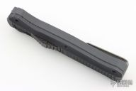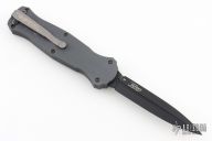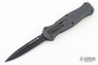 "Introducing an OTF like none-other.. The new Infidel® is rapidly making believers out of many a skeptic. Built for strength and reliability the patent pending double-action mechanics get it done over the long haul. Grab on and you will find the handle grip rock-solid with its patented machined in Presidio® style bi-directional tread pattern, and overall generous sizing for gloved hands. Intuitively pressure the release-slide forward and its spear-point edged steel fires and locks up with a unique three-point retention system with amazingly negligible blade play. Reverse the process and the blade retracts in a rapid blur of motion. The Benchmade Infidel is a special operator’s fantasy come true." Has some light scratches, otherwise good condition.