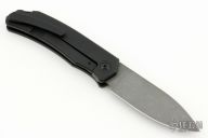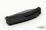 This Trevor Burger design by Urban EDC features a dark stonewashed blade with notched front flipper. The handle has a black tumbled titanium frame with black canvas micarta inlay, matching tip up clip and backspacer. Comes with an original box and zippered case. Excellent condition.