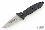 This auto from Smith & Wesson has a drop point blade with false top edge. Black aluminium handle. Tip down Stainless steel pocket clip. Excellent condition.