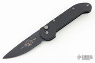 This LUDT side opening automatic by Microtech has a black blade with a standard edge and a black aluminum frame. Bead blasted fittings. Stainless steel clip. Dated 06/06. Includes a original box, papers and nylon sheath. Excellent Condition.