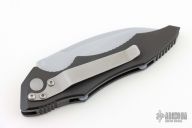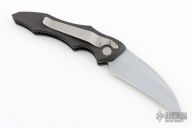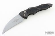 This Kestrel side-opening automatic by Microtech has a silver plain edge blade and is dated 3/2000.  S/N 1238. Stainless steel clip. Aluminum handle features non-slip rubber inserts. Includes original box, papers and nylon sheath. Has some light scuffs, otherwise excellent condition.