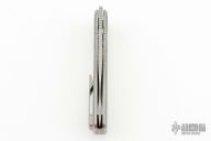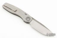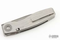 This FSD by Craig Brown Knives features a drop point stonewashed polish blade and notched flipper and fullers. The handle has a tumbled titanium frame with milling style #1, titanium tip up clip and backspacer. Nice detent, action, blade seating and lock up. Comes with original hard case with certificate #225. Has a couple light scuffs, otherwise Excellent condition.
