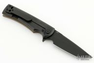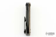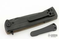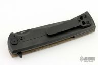This Chaves Liberation features a black finished tanto blade with the Chaves logo and dual thumbstuds. The handle is composed of micarta and black finish titanium with a matching tip up titanium pocket clip. Comes with original box and extra clip. Has a couple light scuffs, otherwise Excellent condition.