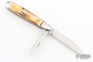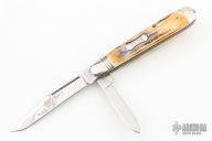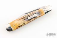 This Pattern #29 by Queen City Cutlery Company features mirror polished blades with nail nicks. The handle has fluted nickel silver bolsters, stag covers, nickel silver escutcheon and liners, stainless steel springs. Has half-stops. Comes with original box. #032 on the bolsters. Excellent condition.