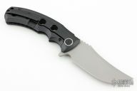 This CCT by M3 Tactical Tech features a bead blasted blade with notched thumbrest and flipper. The handle has a carbon fiber scale, black tumbled titanium frame with matching backspacer and tip up clip, satin finished titanium pivot collars. Rides on bearings, nice detent, lockup and blade seating. Comes with a padded zippered case and original box. Excellent condition.