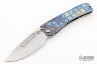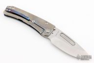 This Midi Marauder from Medford Knife and Tool features a tumbled drop point blade. The handle has an anodized and stonewashed titanium frame with anodized tip up clip. Excellent detent, lockup, and seating. Excellent condition. Comes with original box and papers.