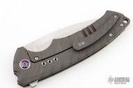This master-crafted WE Nexusia Frame Lock is approximately 4 7/8 inches long (folded/closed) and weighs approximately 4.4 ounces. The contoured handle is Tiger Stripe Pattern Flamed 6AL4V Titanium with Blue Flamed handware, weight reduction milling, tip-up right carry Titanium pocket clip, and lanyard hole. This knife utilizes a 3 1/2" Locking Drop Point blade with a plain edge, compound grind, 3.2mm(0.13") thickness, fullers, finger lever/guard, finger choil, and spine jimping. The blade material is CPM-20CV Stainless Steel with a hand-polished Satin finish. The knife is presented with a storage pouch, user guide, polishing cloth, and stickers. This Nexusia Frame Lock is a professional-grade tool that comes with a Limited Lifetime Manufacturer's Warranty and is not designed nor intended to be used on or against humans. So, whether you're searching for authentic cutlery to collect, a top quality knife to give as a gift, or a superior tool to use, don't pass this one up!