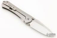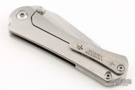 This SBDP by Borka Blades features a mirror polish finished blade with dual thumbstuds. The handle has a bark textured titanium frame with a bead blast finished tip up clip. Nice detent, lockup and blade seating. Comes with original box, zipper case, and card. Has a couple light scratches on the clip otherwise excellent condition.