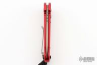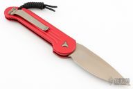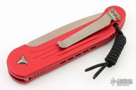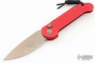 This LUDT side opening automatic by Microtech has a bronzed and stonewash finished blade with a standard edge and a contoured red aluminum frame. Stainless steel clip. Dated 05/2022 and serial number 26735. Has some light scuffs and scratches, otherwise great condition.