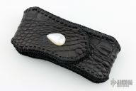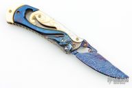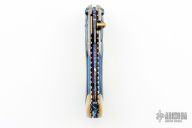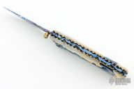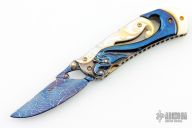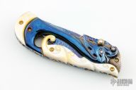 I make folders and balisongs and my preferred handle material is carved or inlayed pearl, but it is very dangerous to work with as it will crack with the slightest error. For this reason, the number of knives I can make is limited to the mistakes I make. Because most of my knives go in collections I use a great deal of mosaic damascus created by Robert Calcinore and Tony Metsala. I believe this steel radiates boldness and brings my knives to life. I also use ATS-34, because it is strong and good for daily use. My personal favorite is Chad Nichols stainless Damascus steel, because it is beautiful and works well for everyday carry knives. Another characteristic of many of my knives is my spring mechanism.