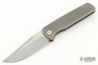 One of the latest folders from CKF, the GNOME! This frame lock front flipper has a two tone satin/CKF Wash blade and milled titanium handles with internal milling for weight reduction. It runs on a multi row bearing system. It has copper pivot collars, a zirc backspacer, and ZircuTi pocket clip. Designed by Danila Marechek.