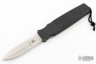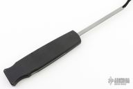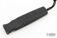 This Border Patrol OTF auto opens by pressing down on the bar on the handle spine. The knife closes by pressing the locking mechanism on the opposite side and pulling the charging handle on the rear. Very strong and fast opening. Both edges of the blade are sharpened. Nicely contoured black aluminum handle. Numbered 0308. Has some scuffs on the handle otherwise the knife is in excellent condition.