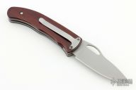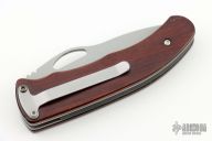 The Double-Duty automatic is a double-action automatic that can function as a one handed opening locking-liner knife or be instantly fired in the automatic mode. The automatic firing mechanism is hidden under the handle and is activated by sliding the front side handle scale towards the back of the knife. Because there are no apparent buttons on the outside of the handle the fact that this is an automatic is known only to its owner. The liners, pocket clip and internal components are stainless steel. The handle is cocobolo. The knife is lightning fast, good looking and comfortable in the hand. There are some chips in the scales otherwise the knife is in good condition.
