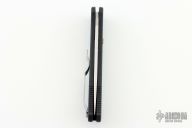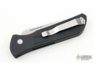 This Python side-opening automatic from Dynamic Knife Designs has a satin finish plain edge blade and a black aluminum handle. Coil spring. Stainless steel clip. Sliding safety. Excellent condition.