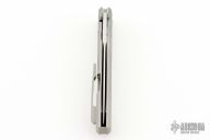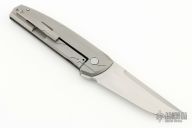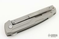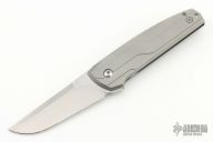 This Dwarf by JK Knives features a hand rub satin finished blade with notched flipper. The handle has a milled and bead blast finished titanium frame, backspacer and tip up clip. Lanyard bail in pommel. Nice detent, lockup and blade seating. Has a couple light scuffs otherwise excellent condition.
