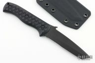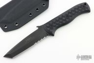This CQC-7 fixed blade by Emerson Knives features a black tanto partially serrated blade with notched thumbrest, .127" blade stock and 1.029" blade depth, full tang construction. The handle has textured and dimpled black G-10 scales. Comes with a kydex sheath, original box and papers. Excellent condition. #0142