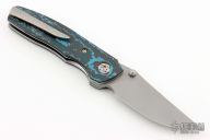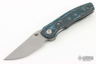 This Dukling by Kody Eutsler features an a bead blast finish blade with dual titanium thumbstuds. The handle has a bead blast finish titanium frame with fat carbon scales, notched titanium backspacer and milled tip up clip with hidden screws. Rides on bearings, nice detent, lockup and blade seating. Comes with a zippered case and COA. Excellent condition.