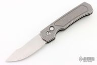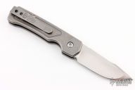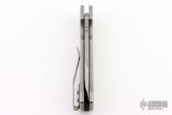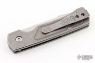 This Collab Auto by Brian Fellhoelter and Jeremy Horton features a tumble finished chisel ground blade and notched thumbrest. Blade ground by Jeremy Horton. The handle has a stonewash finished titanium frame and a tip up titanium clip. S45VN blade. Comes with a zippered case. Excellent condition.