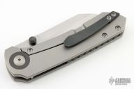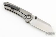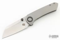 This Maverick S by Matthew Christensen features a satin finished blade with dual zirconium thumbstuds. The handle has a blasted titanium frame, stainless steel lockface insert, zirconium pivot collars, backspacer and tip up clip. Comes with zipper case. Has a couple light scuffs, excellent condition otherwise.