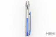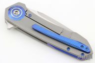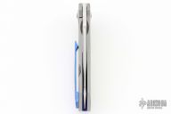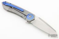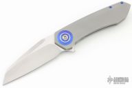 This Drifter flipper from Steven Skiff features a hand rub satin finished blade with flipper. The handle has a milled and bead blast finished titanium frame with zirconium tip up clip, pivot collars and backspacer. Very smooth action on Skiff Bearings with a nice detent, lockup and blade seating. Includes nylon zippered case. Has some light scuffs and scratches, otherwise excellent condition.