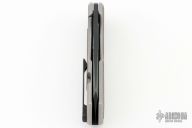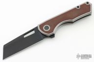 This Production Yeager by Brian Brown features a wharncliffe style blade with black tumble finish. The handle has a tumble finish titanium frame with titanium pivot collars, black matching tip up clip and tumbled backspacer. Natural canvas micarta inlays. Comes with a zippered case. Has a couple light scuffs and scratches, otherwise excellent condition.