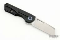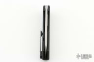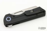This Production Yeager by Brian Brown features a wharncliffe style blade with belt satin finish. The handle has a black PVD titanium frame with anodized titanium pivot collars, black PVD tip up clip and backspacer. Comes with a zippered case. Has a couple light scuffs, otherwise excellent condition.
