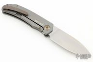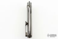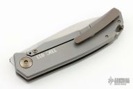 This Urban from Burger Knives features a hand rub satin finished drop point blade with notched thumbrest and front flipper. The handle is comprised of a bead blasted and milled titanium frame with titanium tip up clip and backspace with lanyard bail. Includes a zippered case. Has a few light scuffs otherwise excellent condition.